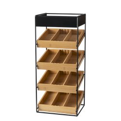 The contemporary look of steel in combination with sustainable bamboo makes this standing tea dispenser a real eye-catcher in your office. Thanks to the movable dividers, almost all tea bags fit in this dispenser.